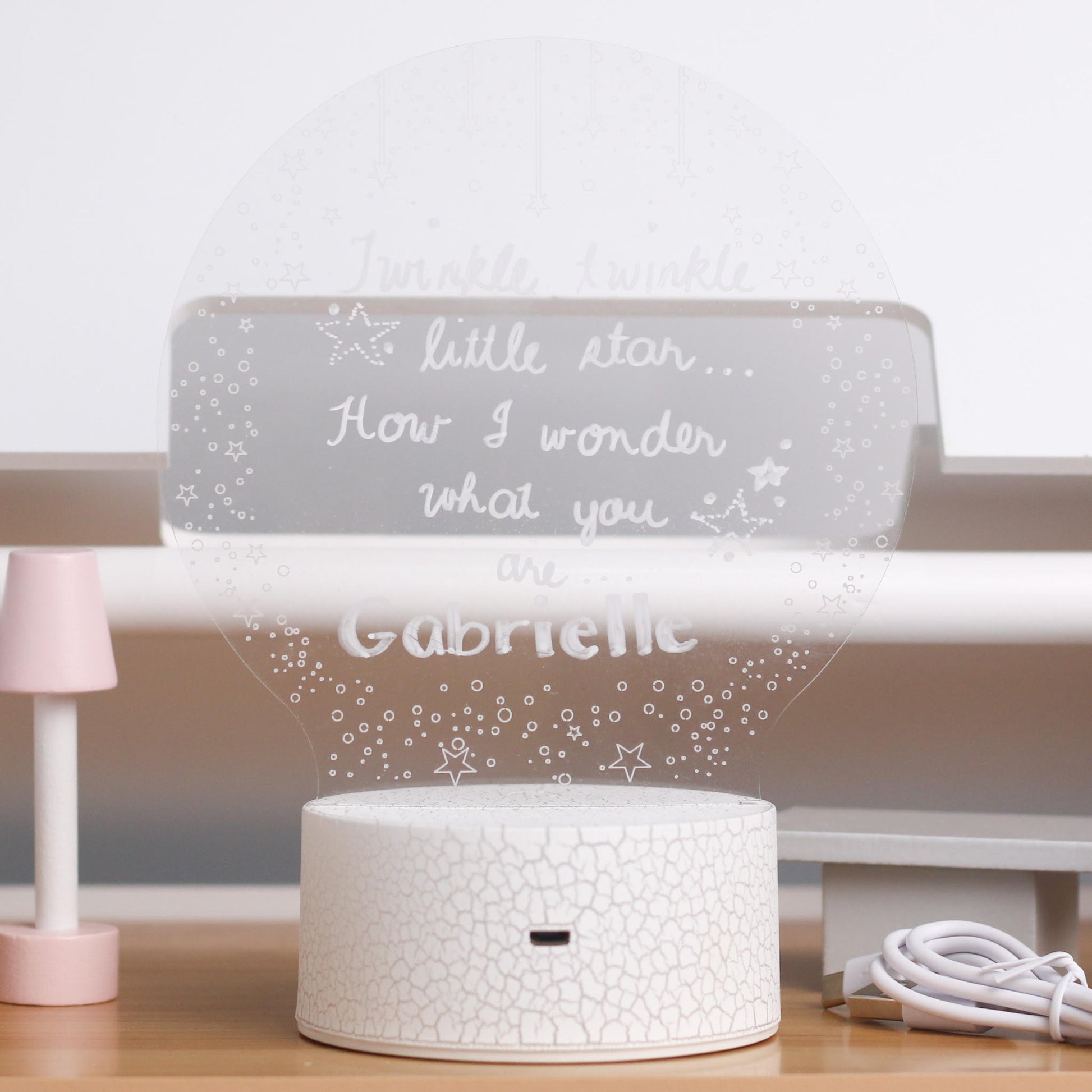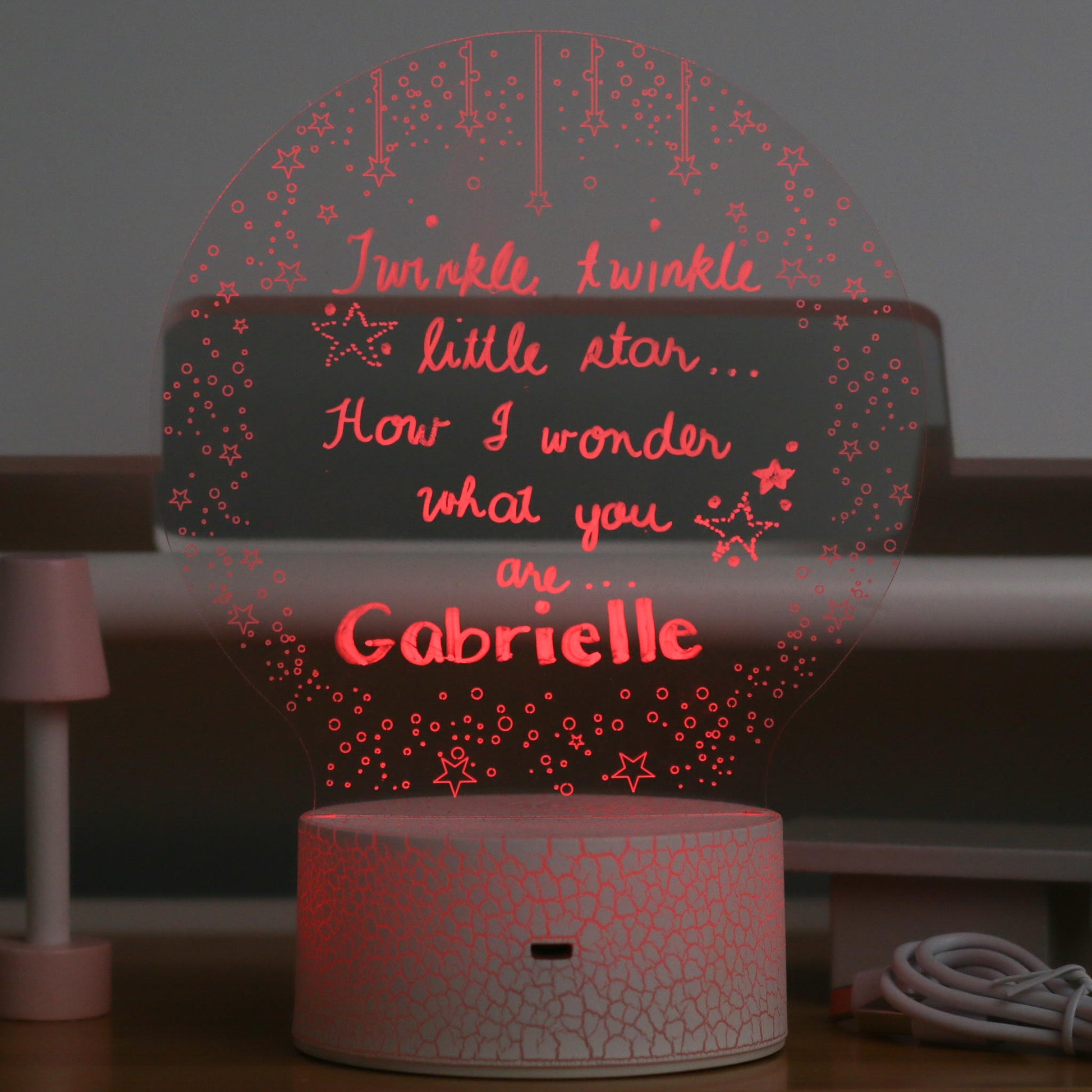 The perfect addition to your Happy Bubzzz sleeping bag: a dazzling writable acrylic night lamp – who said bedtime/nap time had to be boring?