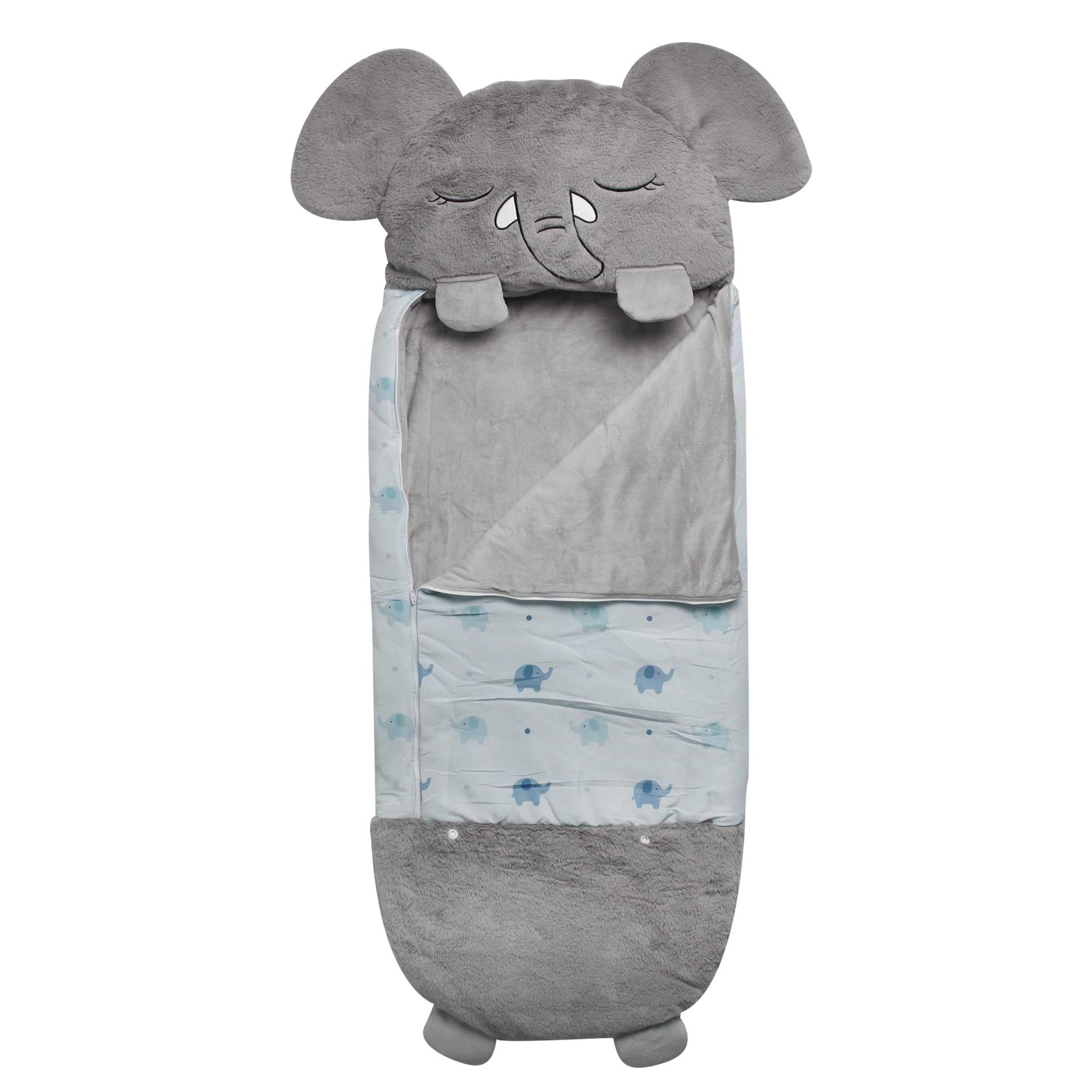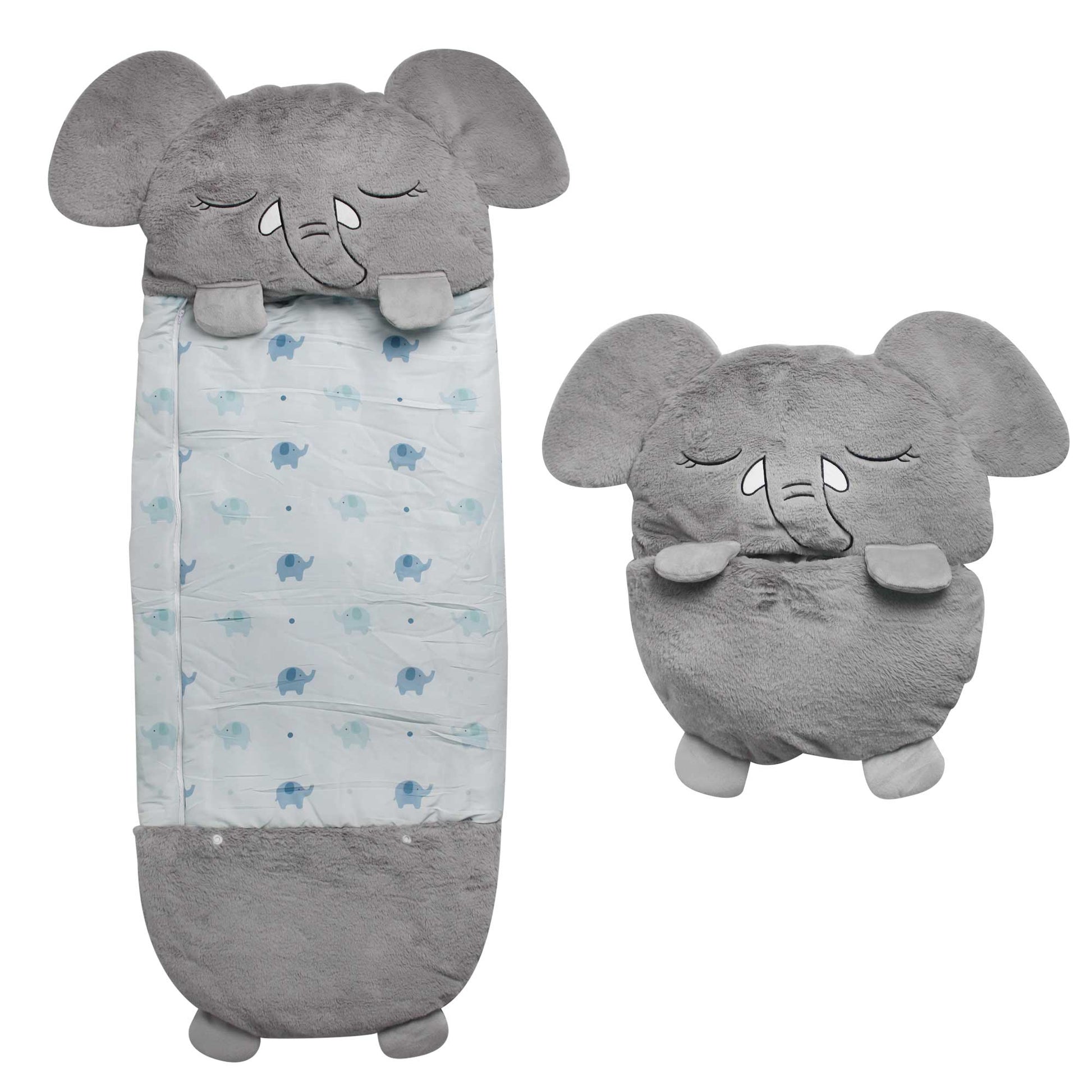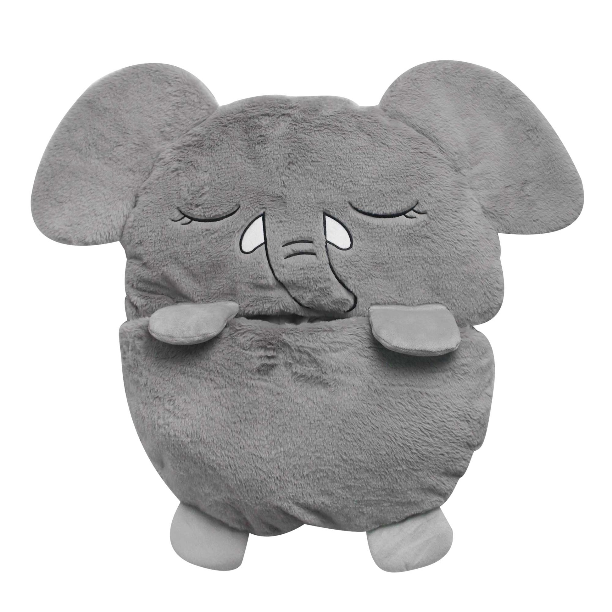 Cuddle up with Eli, an adorable elephant who's been lovingly crafted with premium plush for plenty of cuddles. This ultra soft pillow quickly converts to a sleeping bag when pulled open, providing your kid with a comfy cocoon of snuggly warmth. Super easy to fold, zip up, and button up, it's perfect for camping and sleepovers! Get maximum comfort with premium plush and a flannel interior, ensuring your kid stays nice and snug. So, give your kid the gift of adorable naps today!