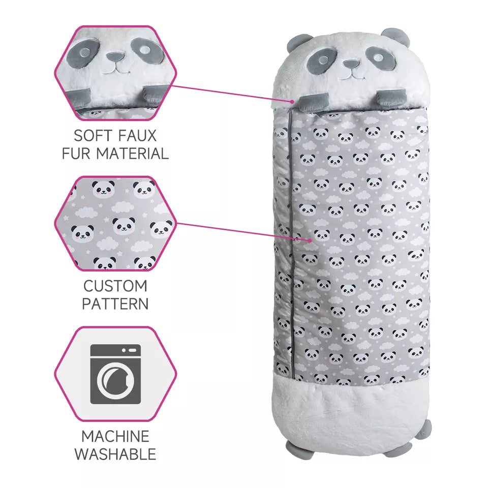 Cuddle up with Popo, an adorable panda who's been lovingly crafted with premium plush for plenty of cuddles. This ultra soft pillow quickly converts to a sleeping bag when pulled open, providing your kid with a comfy cocoon of snuggly warmth. Super easy to fold, zip up, and button up, it's perfect for camping and sleepovers! Get maximum comfort with premium plush and a flannel interior, ensuring your kid stays nice and snug. So, give your kid the gift of adorable naps today!